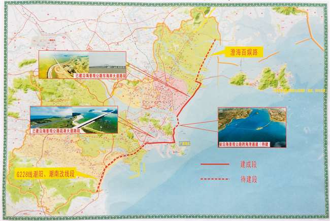 Guangdong Province will build 1600 kilometers of Binhai Highway, approximately running east-west. The Highway will start from Raoping County in Chaozhou City, connect with 14 cities and 90 scenic spots, end at Gaoqiao Town in Lianjiang City, and connect with the road network of Guangxi Zhuang Autonomous Region. Shantou has been determined by the province as the first pilot for constructing Shantou Section of Binhai Highway, with a length of about 80 kilometers and an estimated investment of about RMB 8.8 billion. At present, Shantou is conducting the route reconnaissance of Shantou Section of Binhai Highway and the bidding work for the new channel across the Shantou Bay. Shantou is working hard for starting the construction of the pilot section by the end of this year, which will be completed and opened to traffic in 2021.